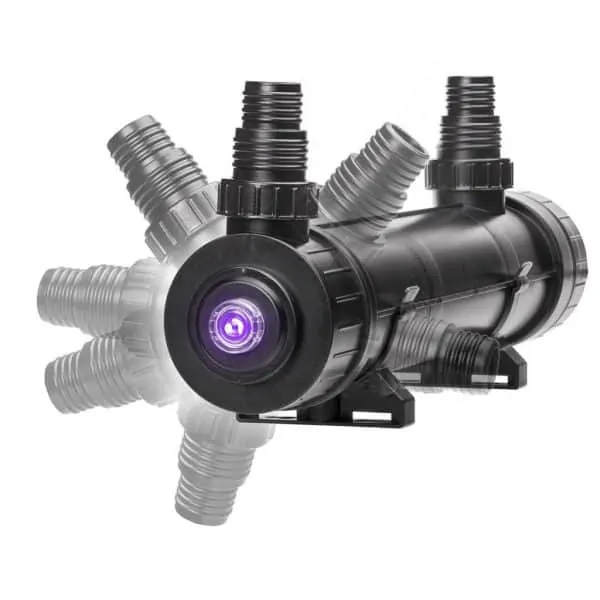 Die Verwendung ist einfach, sicher und dank des integrierten Fensters funktioniert sie zuverlässig. Alle Versionen des Helix Max 2.0 werden mit einem Hochfrequenz-Vorschaltgerät geliefert, das die Lebensdauer und Effizienz der UV-Lampe verlängert. Das Produkt enthält außerdem Anschlüsse zur Schlauchbefestigung.
