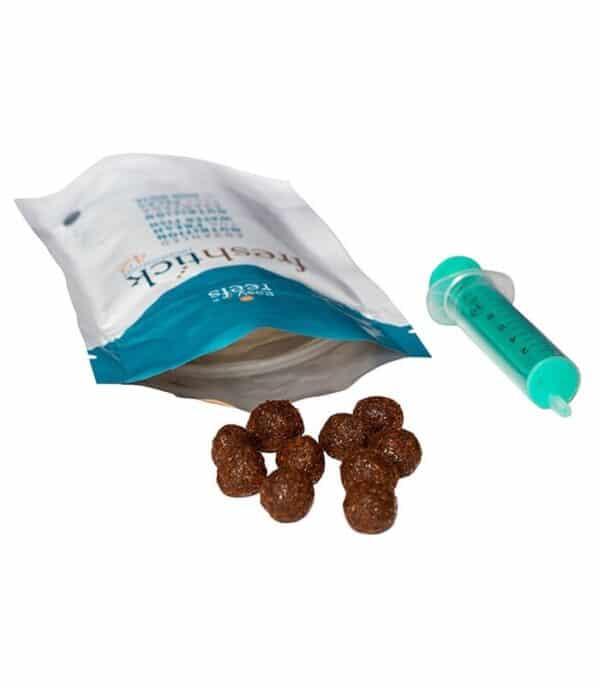 Dank der rehydrierbaren Pulverformel kann Freshtick mit jedem Weichtier- oder Krustentierfleisch sowie mit Eiern von Fischen, Weichtieren und Krustentieren, Artemien, Mysiden, Ruderfußkrebsen, Rädertierchen und oralen Medikamenten gemischt werden. Sobald Freshtick zubereitet und ins Aquarium gegeben wurde, verteilt es sich stundenlang nicht im Wasser, sodass Fische und Krustentiere voll davon profitieren können. Diese Eigenschaft ermöglicht eine Fütterung „ad libitum“ oder kontrollierte Portionen.