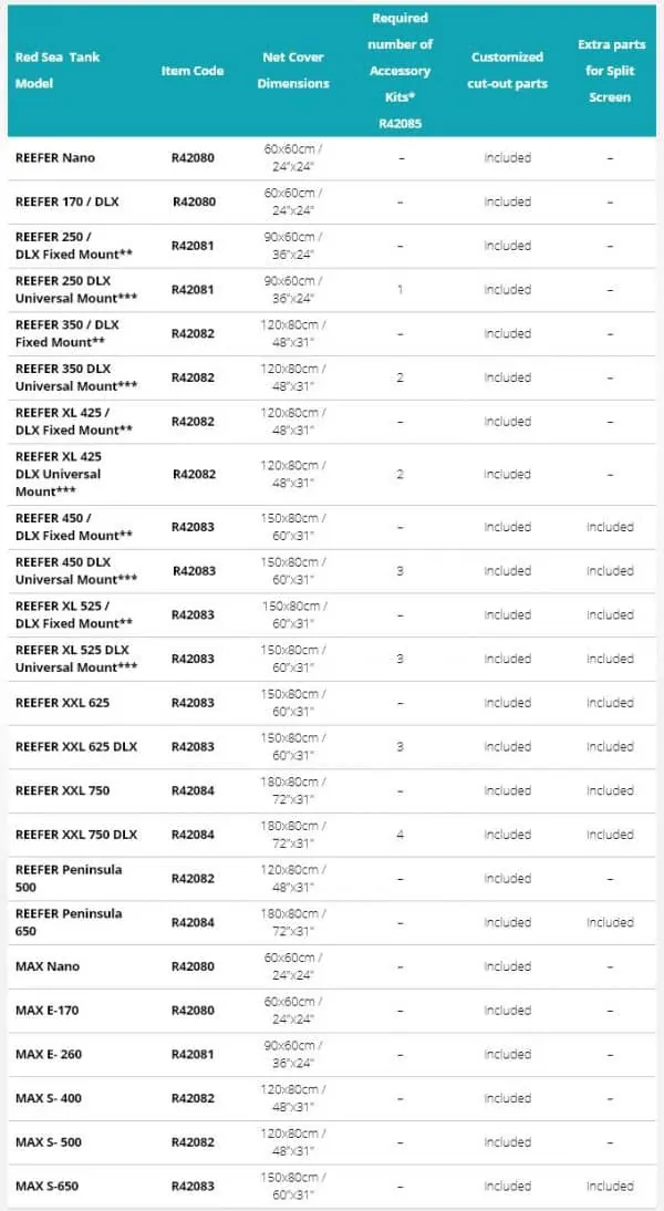 Der Red Sea Tank Net Screen ist eine elegante und vielseitige Aquarienabdeckung, die Ihre Fische schützt und verhindert, dass sie herausspringen. Durch sein schlankes Profil und die Netzabdeckungsaufhänger fügt er sich nahtlos in Ihr Aquarium ein und ist somit eine unauffällige Ergänzung, selbst bei offenen Aufbauten.